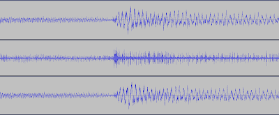 In the following picture you can see, in order, 500msec of the original, uncompressed audio, the differential on the squared signal used as input for the encoder, and the codebook-reconstructed 8-bit waveform, which is what the C64 plays